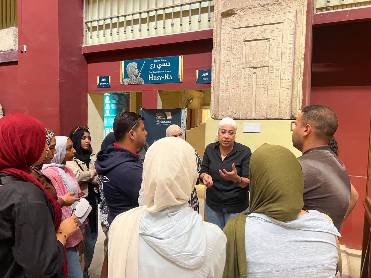 وقد تضمنت الزيارة جولة علمية متميزة داخل المتحف المصري بالتحرير، حيث تعرف الطلاب على أبرز القطع الأثرية وقواعد وأساليب الإرشاد السياحي داخل المتاحف، بما يعزز من خبراتهم العملية ويربط الجانب الأكاديمي بالتطبيق الواقعي في الميدان السياحي