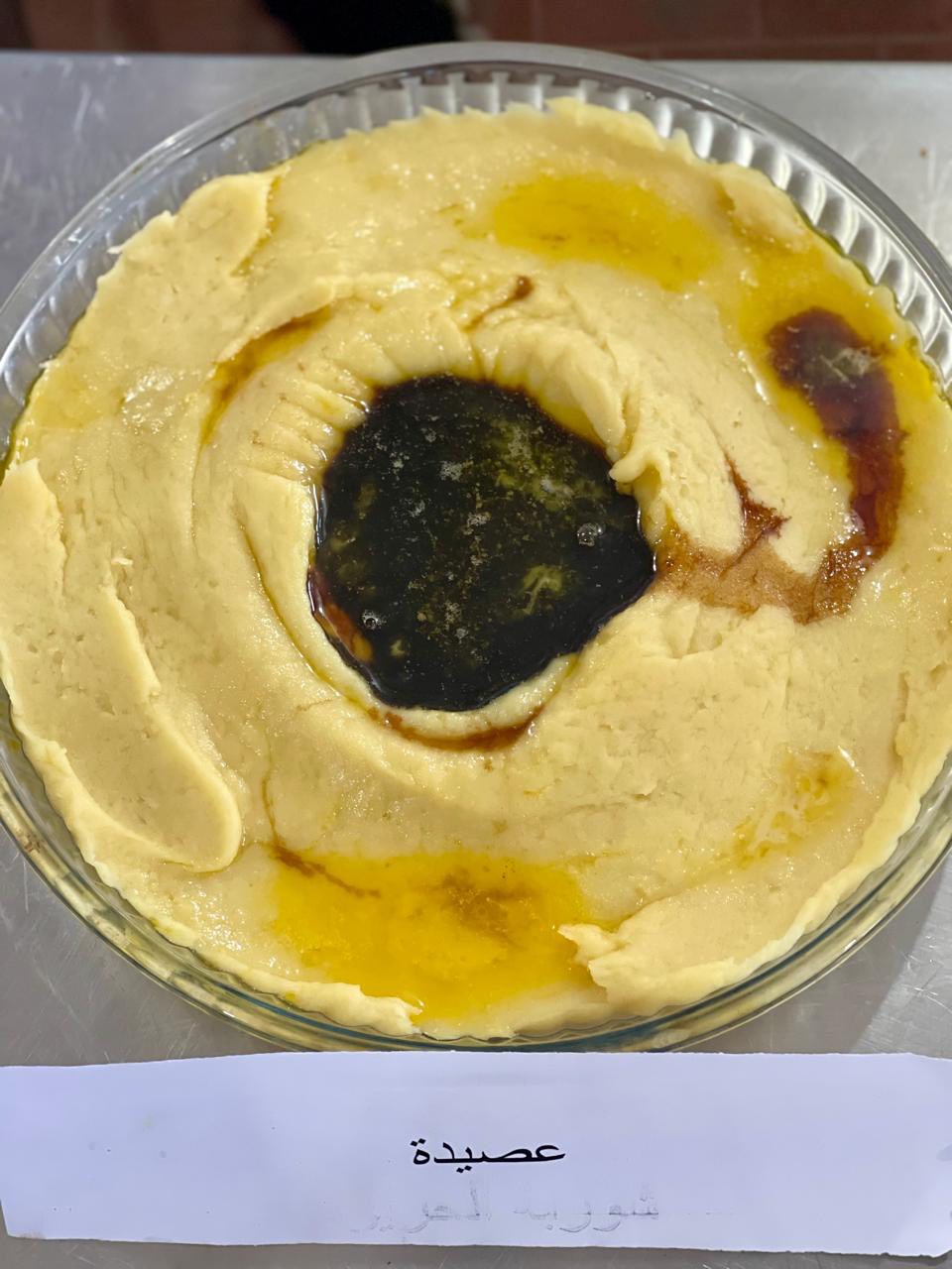 والحلو التقليدي العصيدة المصنوعة من الدقيق والزبد والحليب ودبس التمر