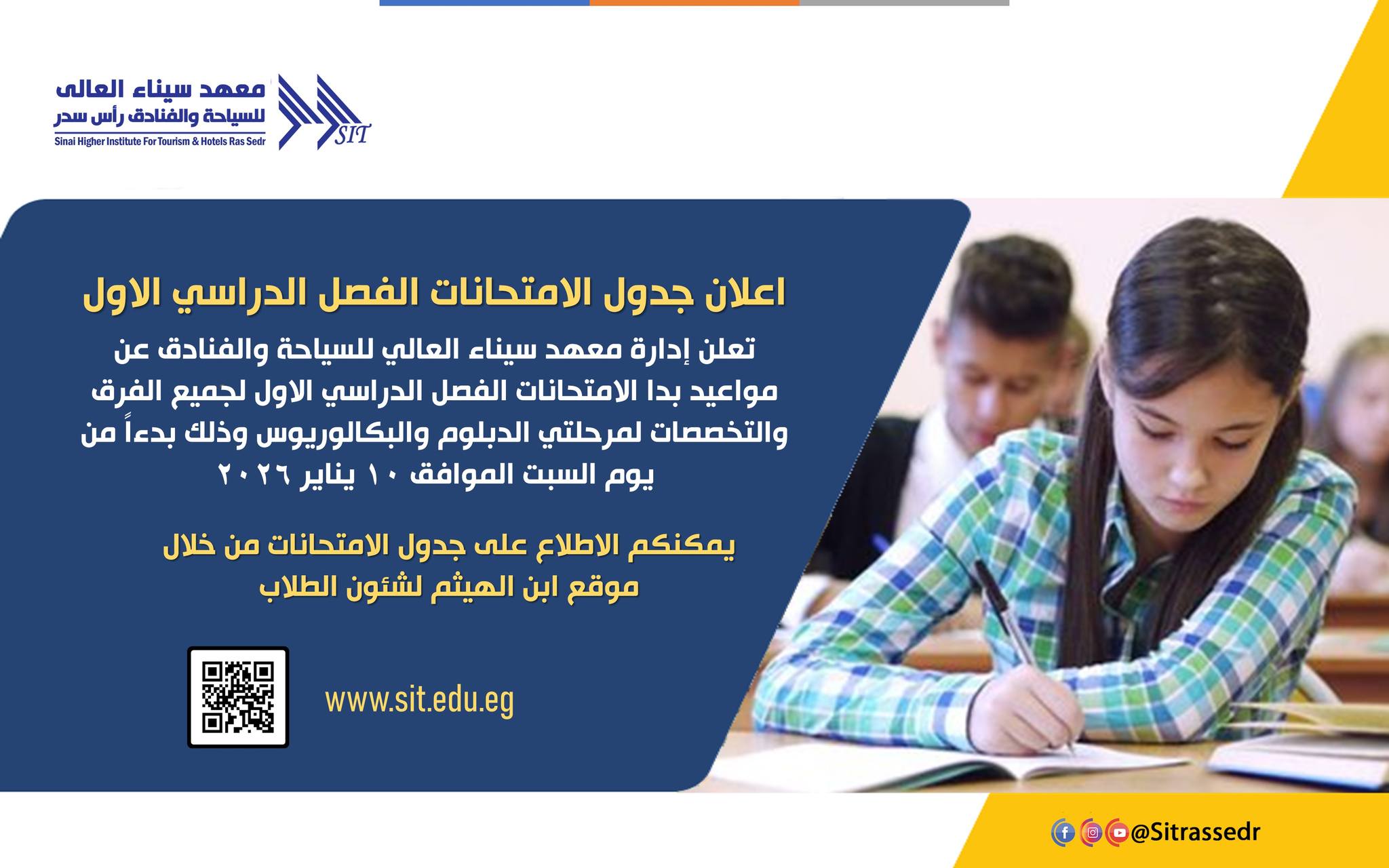 يعلن معهد سيناء العالي للسياحة والفنادق برأس سدر