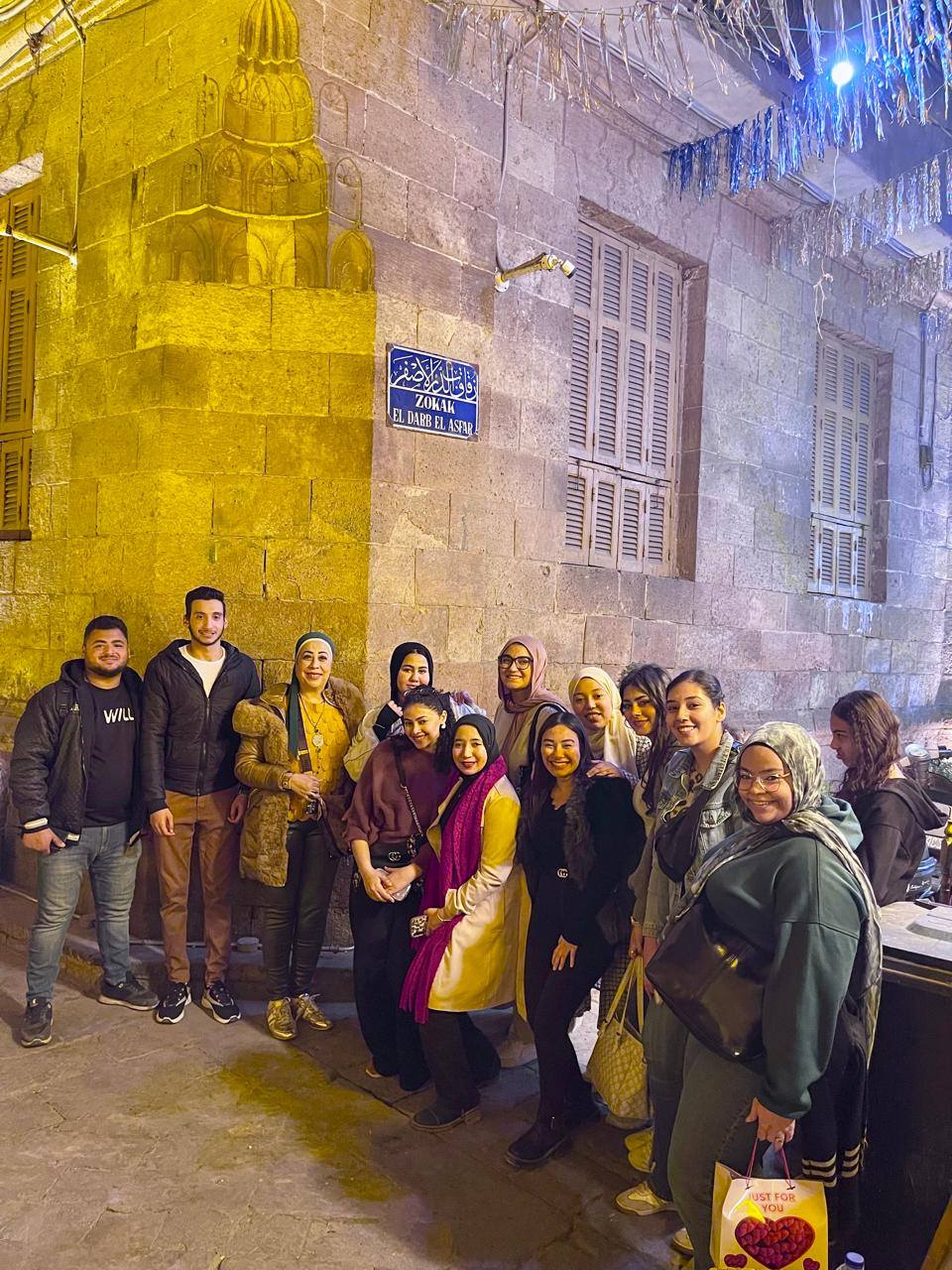 وقد تحوّل شارع المعز لدين الله الفاطمي خلال الجولة إلى قاعة تعليمية مفتوحة لطلاب القسم، حيث أتيحت لهم فرصة التعرف ميدانياً على القيمة التاريخية والمعمارية لأحد أهم شوارع القاهرة التراثية.